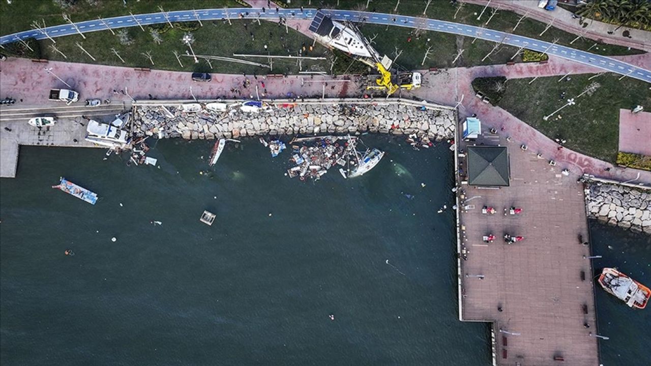 Deniz yüzeyinde kalan ve kıyıya vuran parçaların temizliği yapılırken, hasar alan tekneler ise vinç yardımıyla kurtarılmaya çalışılıyor. Ayrıca dalgaların karaya getirdiği atıkların da temizlenmesi için çalışma yapılıyor.