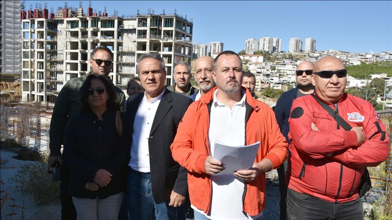 İzmir Büyükşehir Belediyesine yönelik yolsuzluk soruşturması sonrası kamuoyunda kooperatif ve kentsel dönüşüm mağdurları olarak anılan hak sahipleri, Gaziemir 1. Etap Kentsel Dönüşüm Projesi inşaatı önünde basın açıklaması düzenledi.