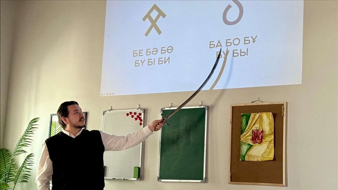 Kazakistan’ın başkenti Astana’da yaşayan Bauırjanulı, kurduğu “You.Art” sanat atölyesinde Türklerin en eski alfabesi olarak kabul edilen Göktürk alfabesini öğretiyor.