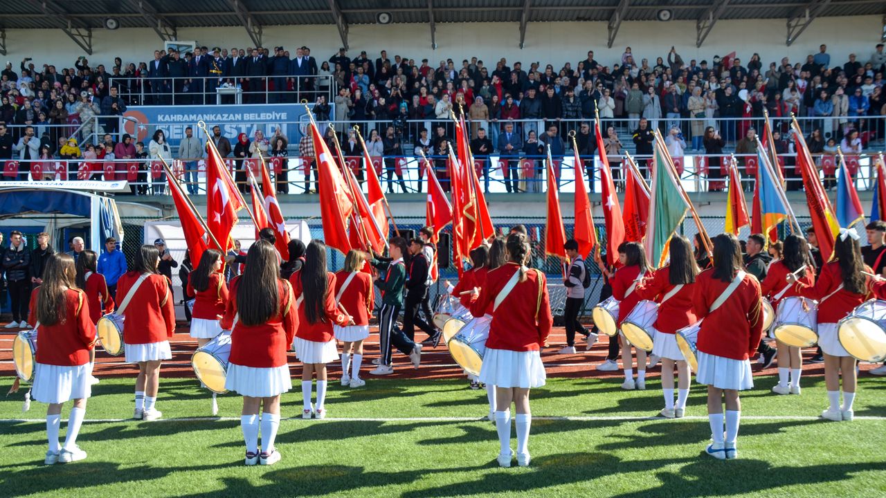 Cumhurbaşkanı Recep Tayyip Erdoğan'ın mesajının okunduğu, öğrencilerin gösteriler yaptığı program, tören geçişiyle sona erdi.