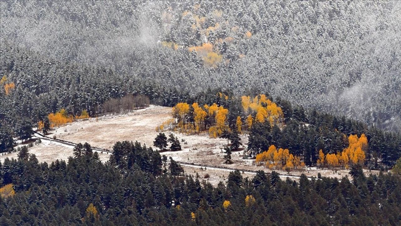 Beyaz örtünün, sonbahar renklerinin hakim olduğu ormanla buluşması güzel manzaralar ortaya çıkardı. Ormanlık alanda yiyecek arayan yılkı atları da görüntülendi.