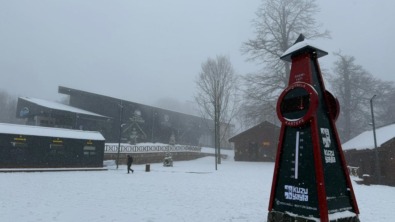 Hava sıcaklığının eksi 1 derece ölçüldüğü Samanlı Dağları'nın 1640 rakımlı zirvesi Kartepe'de, sabah saatlerinden itibaren kar yağışı etkili oldu. Kartepe'nin eteklerindeki Kuzu Yayla Tabiat Parkı beyaza büründü. Kar kalınlığı yeşillik alanlarda yaklaşık 10 santimetreye ulaştı. Kocaeli Büyükşehir Belediyesi ve Kartepe Belediyesi ekipleri, zirveye giden yollarda ulaşımda aksama yaşanmaması için çalışma yaptı