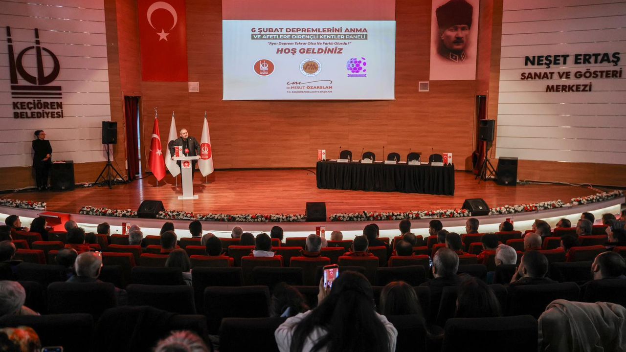 Keçiören Belediye Başkanı Dr. Mesut Özarslan, panelin açılışında yaptığı konuşmada depremin bir gerçeklik olduğunu, bu gerçeğe karşı bilimin ve denetimin rehberliğinde hareket edilmesi gerektiğini vurgulayarak şunları söyledi: “Bundan 3 yıl önce meydana gelen ve hepimizi derinden üzen depremin anısına bugün burada toplanmış bulunuyoruz. Aramızda bu işin uzmanı kıymetli hocalarımız, sivil toplum kuruluşlarının değerli temsilcileri ve meslek odalarımızın yöneticileri var. Şunu hiçbir zaman unutmamalıyız; deprem bu topraklarda geçmişte de vardı, bugün de var ve bundan sonra da olmaya devam edecek. Bu nedenle depremi kader olarak görmek yerine, bilimin ve aklın rehberliğinde gerekli tedbirleri almak zorundayız. İlimle, bilimle, etkin denetimle ve doğru yöntemlerle bu süreci yönetmek mecburiyetindeyiz. Keçiören’de böylesine akademik bir panele ev sahipliği yapmaktan büyük bir onur duyuyoruz. Keçiören’in bilimin ve ilmin konuşulduğu bir merkez olması için her türlü desteği vermeye devam edeceğiz. Ayrıca Jeofizik Mühendisleri Odası Başkanı Sayın Serdar Kart’ın belediyemiz bünyesinde görev yapması bizler için büyük bir kazanımdır. Kendisine ve bu panelin düzenlenmesinde emeği geçen tüm akademisyenlerimize teşekkür ediyorum. Panelimizin Keçiören’imize, Ankara’mıza ve ülkemize hayırlı olmasını diliyor, emeği geçen herkese teşekkür ediyorum. Ne mutlu Türküm diyene!”