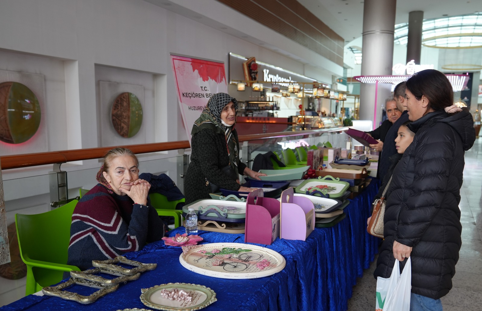 Kurs sürecinde hazırlanan el emeği ürünler, Keçiören’deki bir alışveriş merkezinde açılan el sanatları sergisi ile üç gün boyunca vatandaşların beğenisine sunuldu. Dekoratif ahşap objeler ve çeşitli el sanatları çalışmalarının yer aldığı sergi, ziyaretçilerden yoğun ilgi görürken; konukevi sakinlerinin emeği de takdir topladı.
