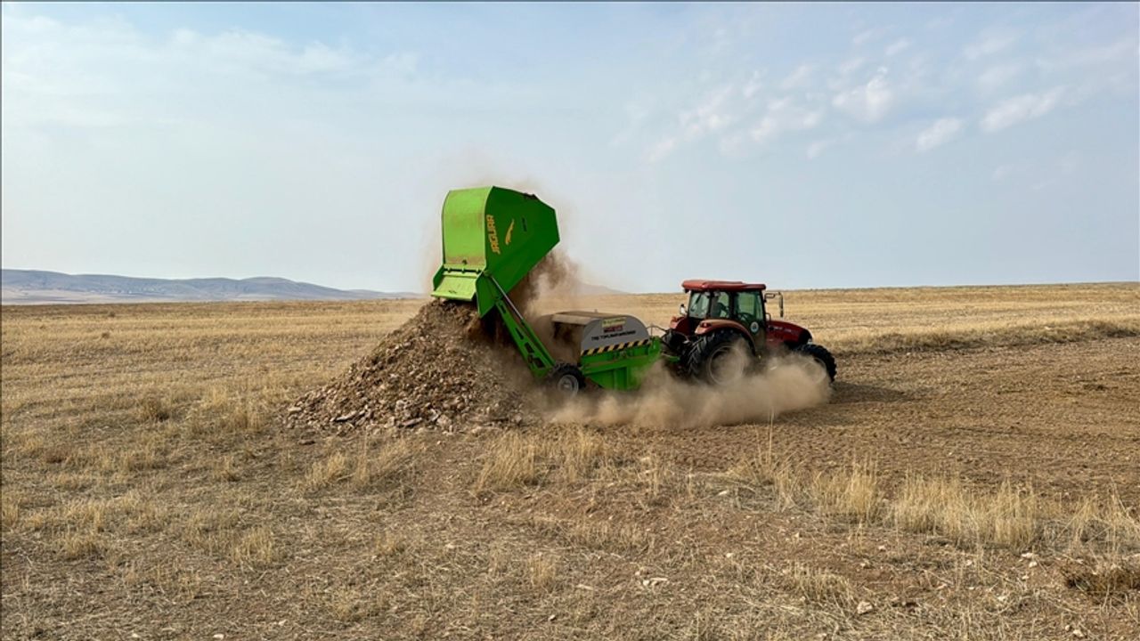 Bu kapsamda Kırşehir Ziraat Odası Başkanlığı öncülüğünde tarlalardaki verim kaybının en aza indirilmesi, ekim, bakım ve hasat süreçlerinde alet ve ekipmanlara verdiği zararın önüne geçilmesi amacıyla tarlalardaki taşlar makineyle toplanıyor.