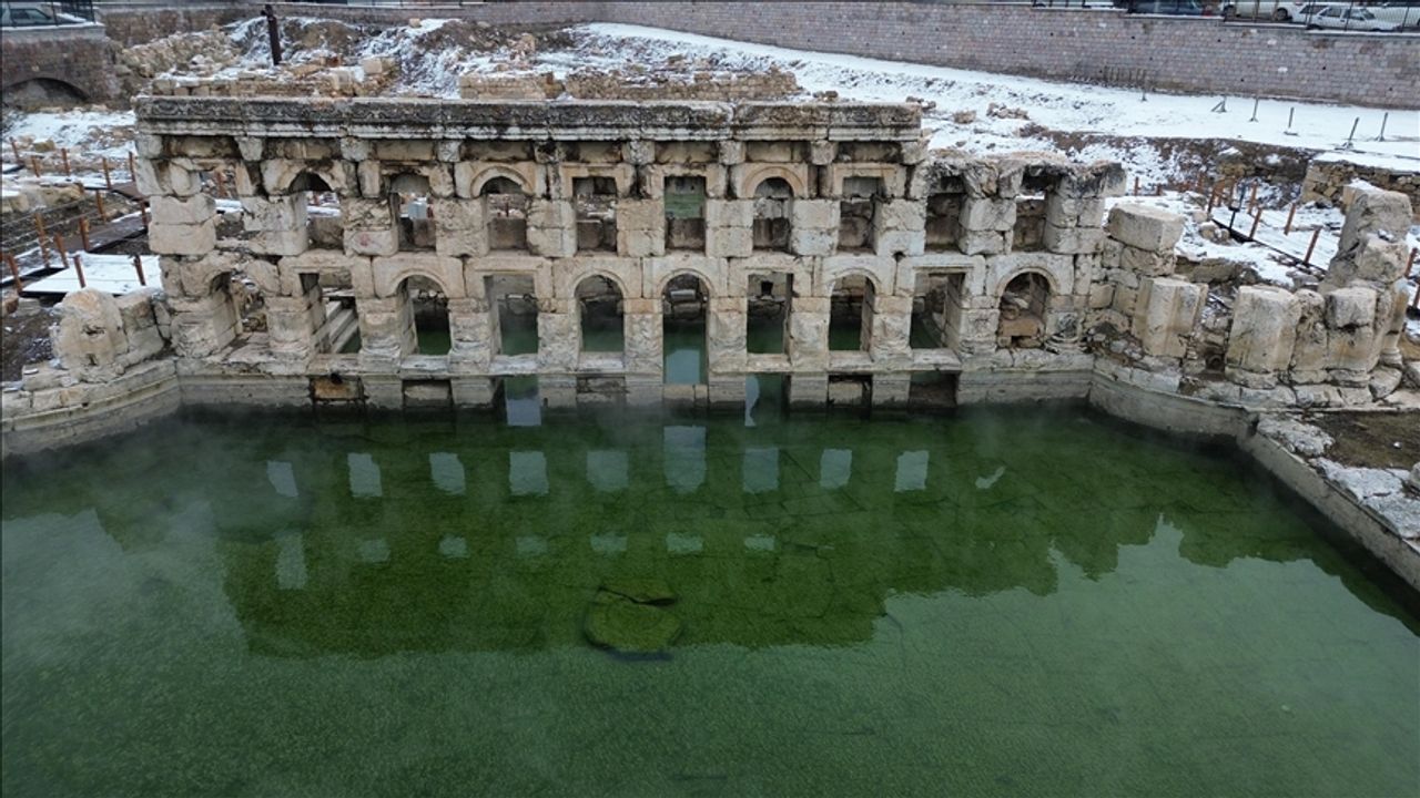 Yozgat Müze Müdürlüğü gözetiminde 2022'de başlatılan ve Ağustos 2024'te tamamlanan çevre düzenleme çalışmalarının ardından ziyaretçilerini ağırlayan hamamda, son günlerde etkisini gösteren soğuk hava ve kar yağışının ardından güzel görüntüler oluştu.