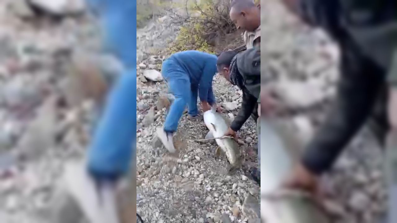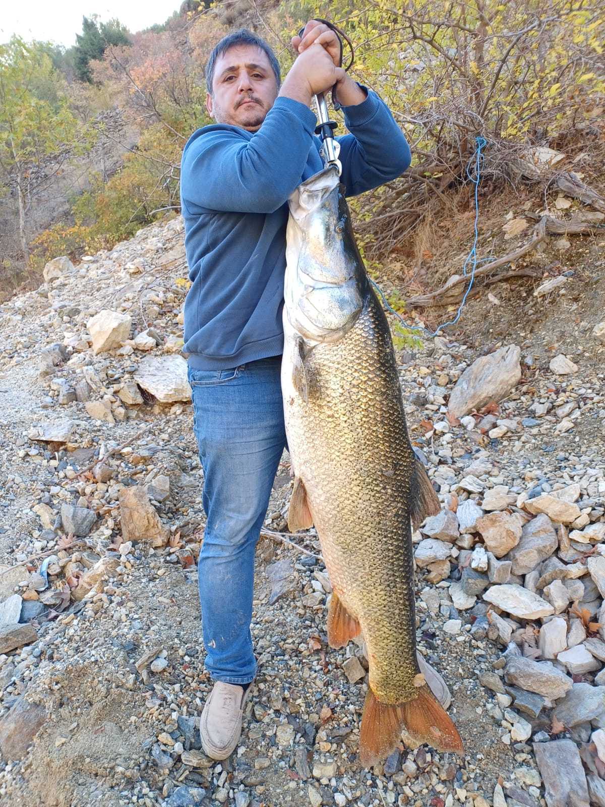 Konurtay Mahallesi’nde Karakaya Baraj Gölü'nde ava çıkan 4 arkadaştan Ertuğrul Yılmaz'ın oltasına dev bir balık takıldı. Heyecanla oltayı çekmeye başlayan Yılmaz'a 3 arkadaşı da yardım etti.