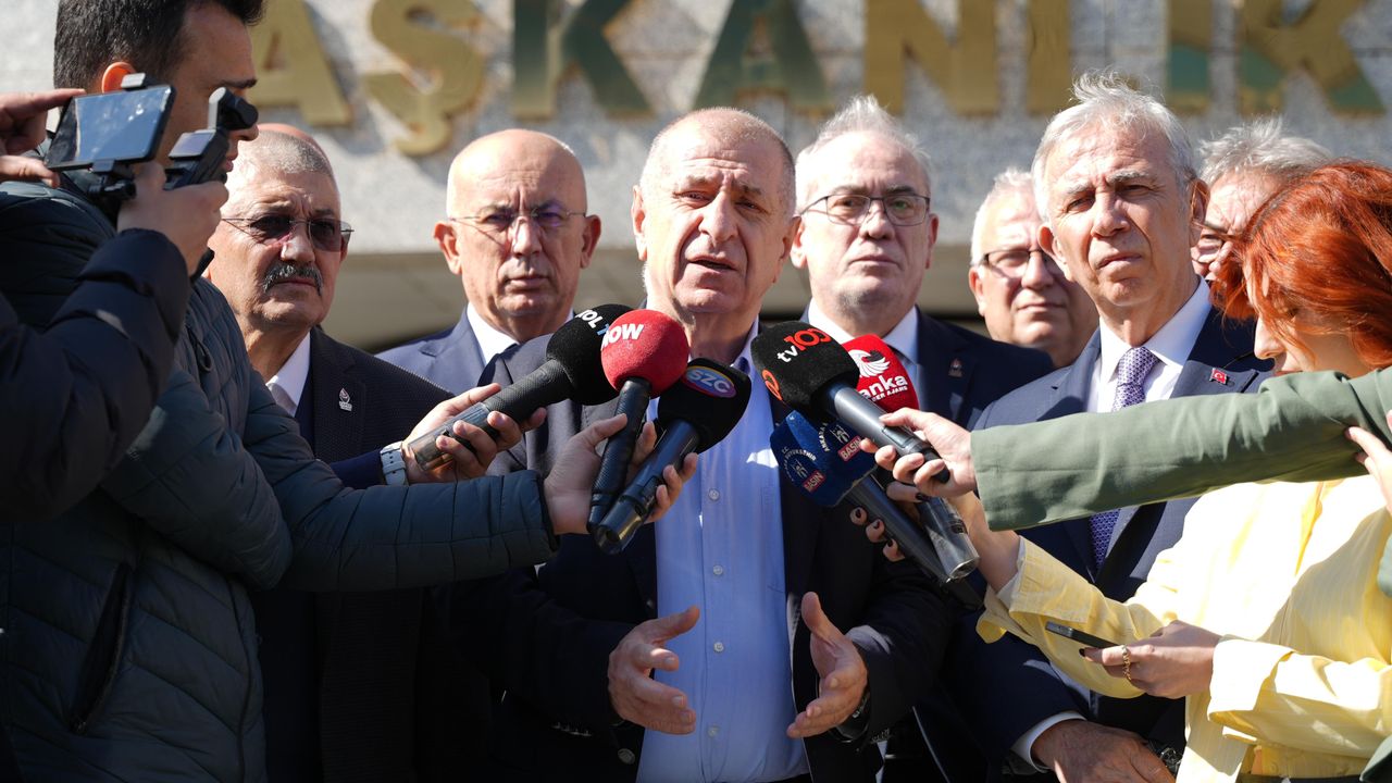 Prof. Dr. Ümit Özdağ: “Türkiye Cumhuriyeti Anayasası'nın 10. maddesi, bütün yurttaşların yasalar önünde eşit olduğunu belirler. Siyasi görüşü, dili, mezhebi ne olursa olsun. Ancak uzunca bir süredir iktidar tarafından uygulanan düşman ceza hukuku uygulaması neticesinde, anayasanın 10. maddesinin adeta tasfiye edildiği bir ülkede yaşıyoruz ve yargı siyasete yönelik, muhalefete yönelik bir araç olarak kullanılıyor. Şimdi de Ankara Büyükşehir Belediye Başkanımız Sayın Mansur Yavaş'a karşı bir yargı girişiminin olduğunu görüyoruz. Türk halkı Mansur Yavaş'ı tanıyor ve seviyor. Mansur Yavaş uzun yıllar hukukçu olarak Türk halkına, adalete hizmet etmiş bir siyasi kimlik. Yapmış olduğu her şeyde hukuku gözeterek yaptığından biz eminiz kendisini yıllardan beri tanıyoruz. Aynı partide de bir dönem siyaset yaptık ve bugün Zafer Partisi olarak bütün kadrolarıyla Zafer Partisi'nin Mansur Bey'e destek verdiğimizi açıklamak için buradayız. Bugün de Mansur Bey'in yanındayız. Yarın da olumlu olumsuz olacak gelişmelerde Mansur Bey'in arkasında olmaya devam edeceğiz. Ta ki düşman ceza hukuku uygulamalarına son verilene kadar.” dedi.