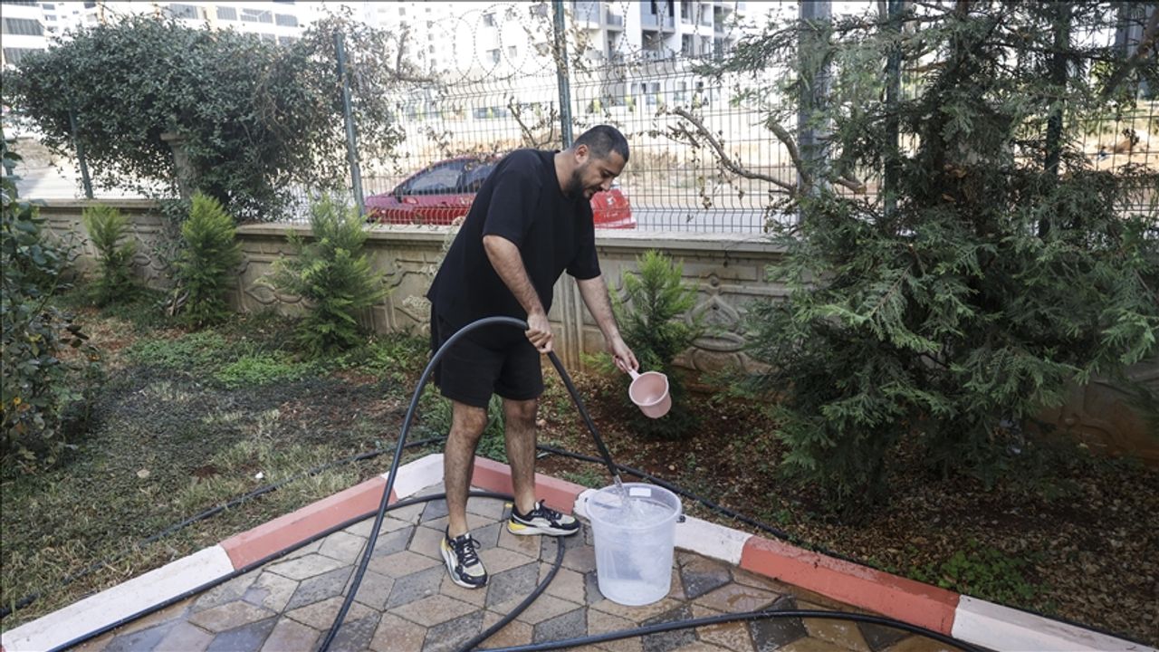 Kesintinin sürdüğü Mezitli ilçesi Akdeniz Mahallesi'ndeki bina sakinleri, ihtiyaçlarını karşılamak için bahçelerindeki kuyu suyunu kullanıyor.