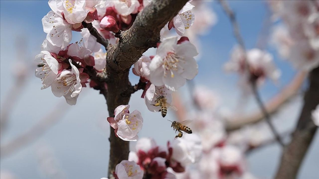 Hava sıcaklığının 19 dereceye çıktığı Selamlı Mahallesi'nde kayısı ağaçları çiçeklendi.