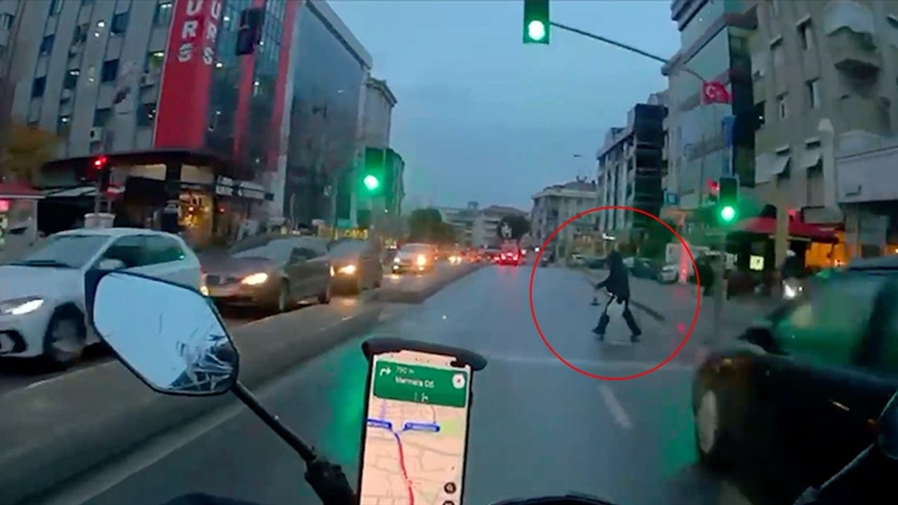 Çarpmanın etkisiyle motosiklet sürücüsü ve yaya yola düştü. Sağlık ekiplerinin müdahale ettiği yaya, hafif yaralı olarak hastaneye kaldırıldı. Motosikletlinin kask kamerasınca kaydedilen görüntülerde kaza anı yer alıyor.