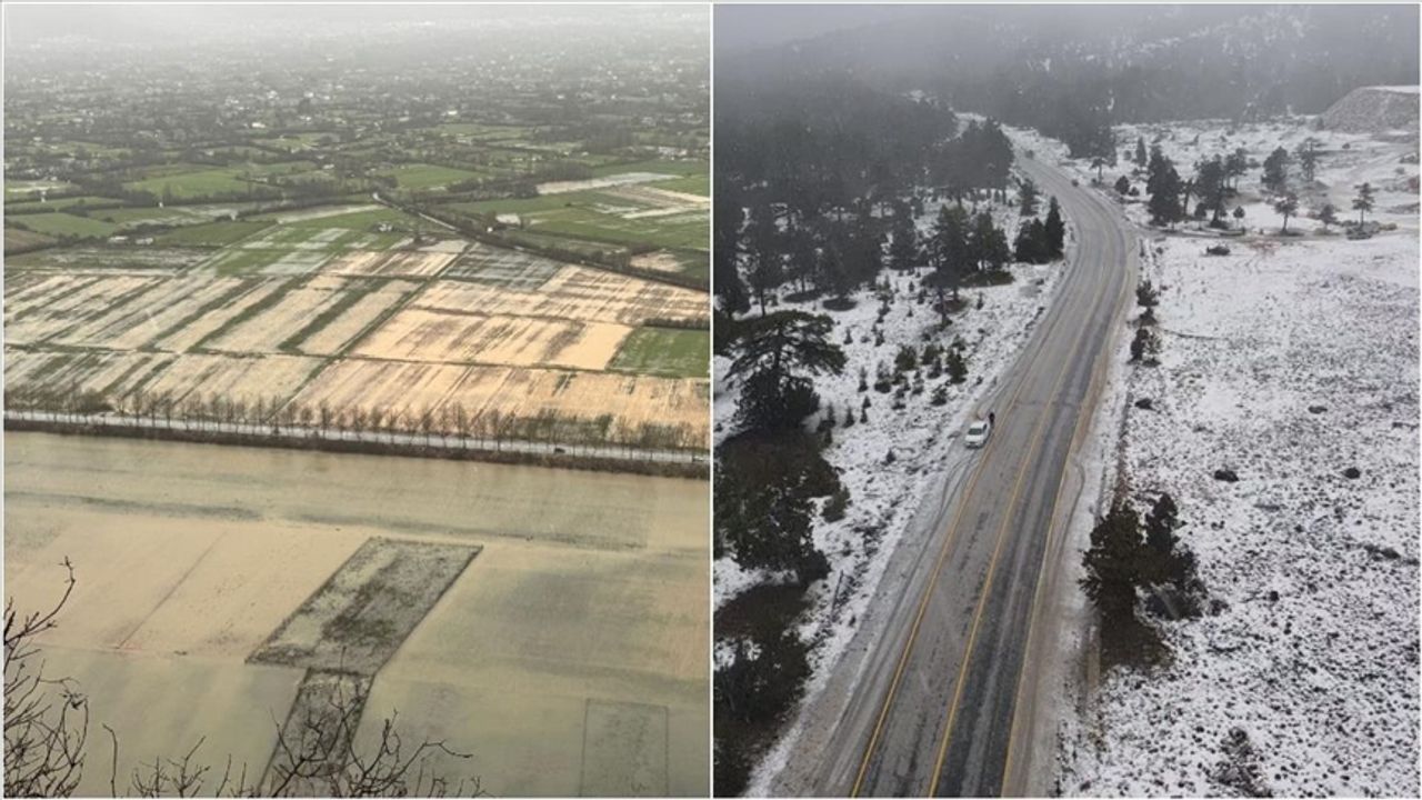 Düğerek Mahallesi ve çevre yolunda bazı tarım arazileri su altında kaldı. Kısa süre etkili olan dolunun ardından yollar beyaza büründü.