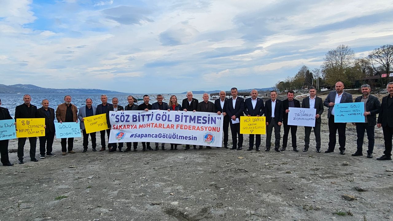 Sapanca ilçesindeki Sapanca Gölü'nde kuraklık nedeniyle su seviyesi azaldı. Gölün kurumaya başlayışına dikkat çekmek için 16 ilçenin muhtar dermek başkanları bir araya geldi. Sakarya Muhtarlar Federasyonu Başkanı Erdal Erdem’in yanı sıra Adapazarı, Akyazı, Arifiye, Erenler, Ferizli, Geyve, Hendek, Karapürçek, Karasu, Kaynarca, Kocaali, Pamukova, Sapanca, Serdivan, Söğütlü ve Taraklı ilçelerinin muhtarlar dernek başkanları, Sapanca Gölü kenarında döviz ve pankartlar açarak açıklama yaptı.