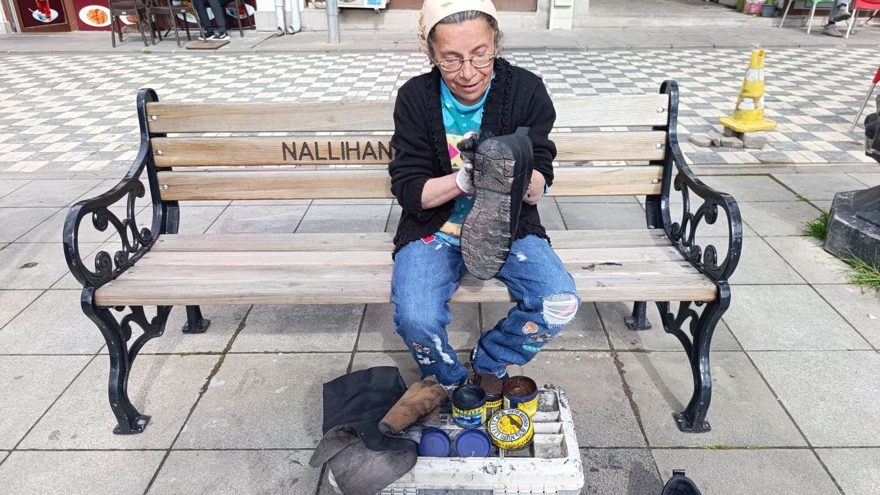 İlçeye bağlı Hacıbey Mahallesi'nde yaşayan Küçükoğlu, rahatsızlığından dolayı eşi mesleğini yapamayınca ayakkabı boyacılığı yapmaya başladı.