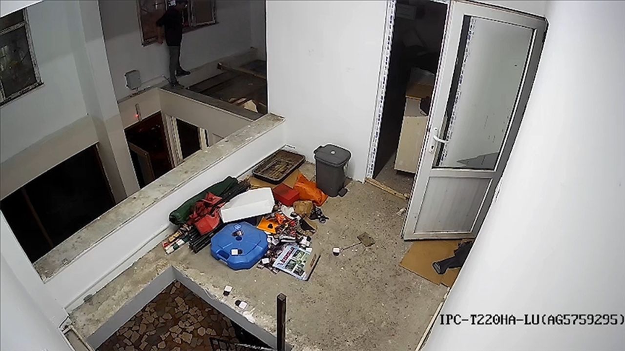 Yunus Emre Mahallesi'nde tadilat yapılan iki katlı iş yerinde bulunan Mustafa Çöp, asma katın çökmesi sonucu alt kattaki ofise düştü. Kazanın yaşandığı anlar iş yerinin güvenlik kamerasına yansıdı.