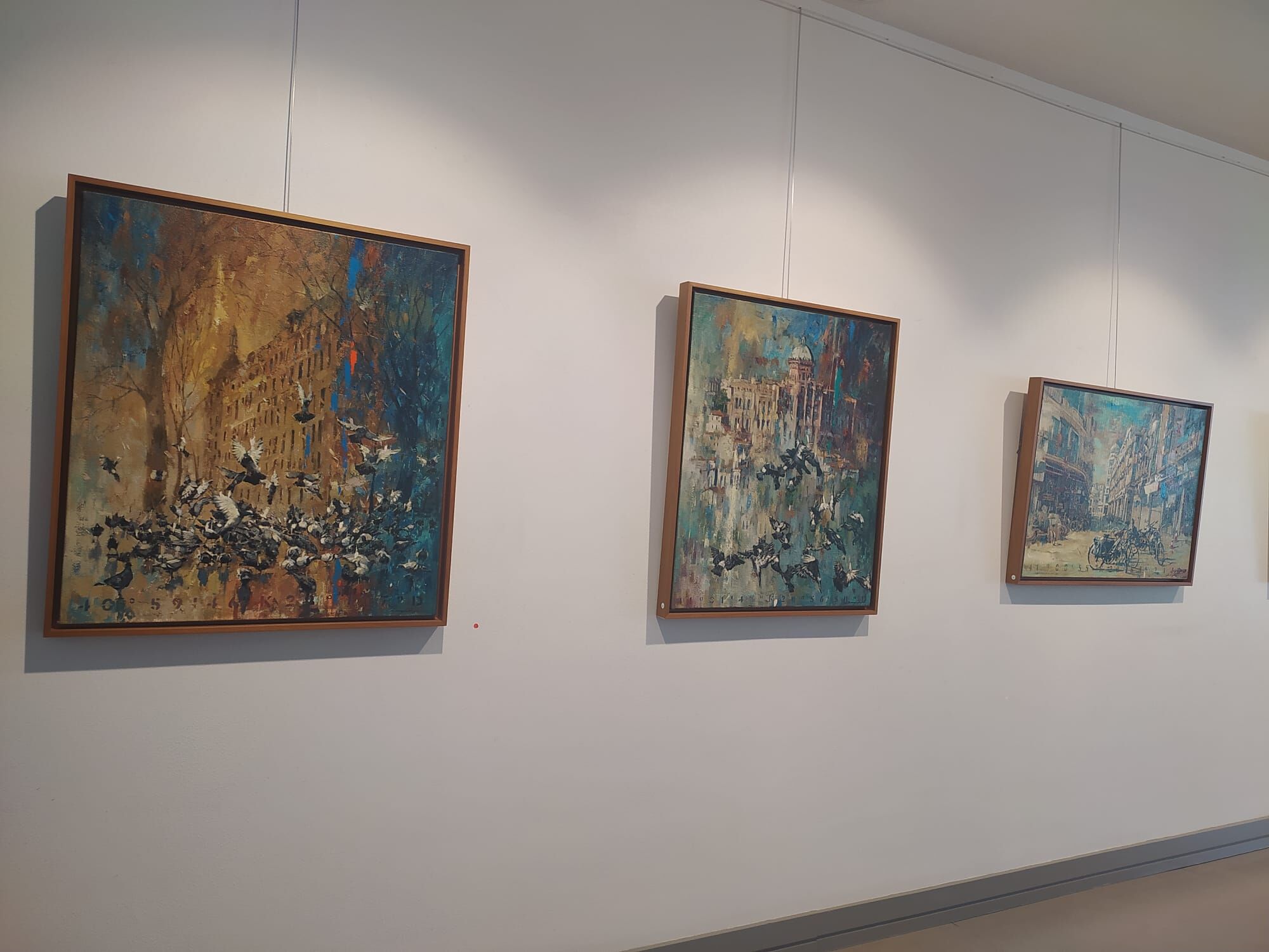 Sergideki eserler, sanatçının "Güvercinler" ve "Bisikletler" adını verdiği iki ana seri üzerinden şekilleniyor. Tarihi meydanların tanığı olan güvercin figürlerinin yanı sıra, şehir içindeki yavaşlamayı temsil eden bisikletler; Akça’nın resimlerinde mekânın hafızasını ve şehirle kurulan bağı görünür kılan temel unsurlar olarak öne çıkıyor.