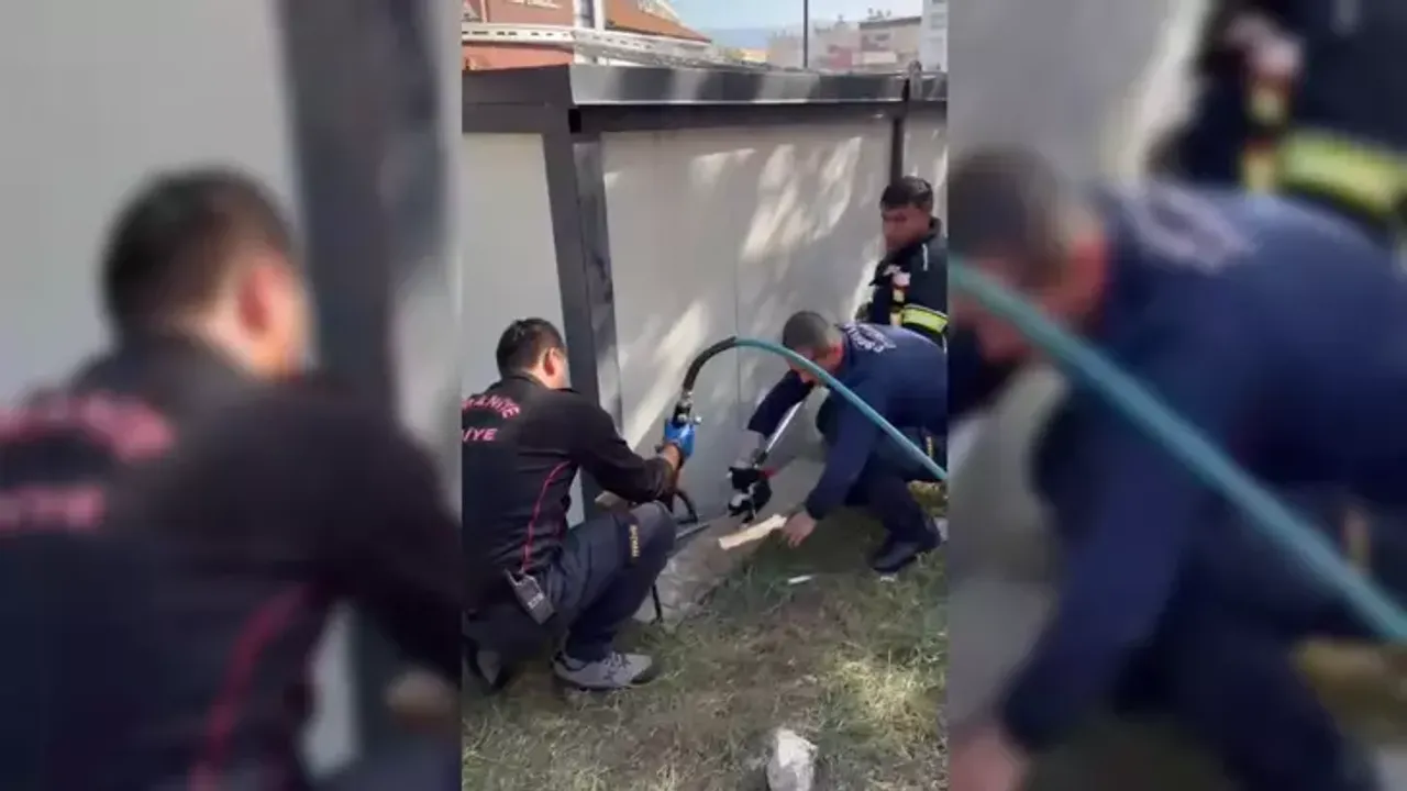 Merkez İstiklal Mahallesi Rahimehatun Meydanı’nda bulunan konteyner iş yerlerinin arka kısmındaki boşluktan içeri giren kedi bir daha çıkamadı. Esnaflar kendi çabalarıyla kediyi bulunduğu yerden çıkartamayınca, 112 Acil çağrı Merkezini arayarak yardım istedi. İhbar üzerine bölgeye Osmaniye Belediyesi İtfaiye Müdürlüğüne bağlı ekipler sevk edildi. Kısa sürede olay yerine ulaşan ekiplerce, hidrolik kesme makası kullanılarak konteyner ile bordür taşları arasında kontrollü bir açıklık oluşturuldu. Açılan bölümden dikkatle çıkarılan yavru kedinin yapılan genel sağlık taramasında durumunun iyi olduğu belirlendi. Minik kediye su ve mama verilerek rahatlaması sağlandı. Esnaflar itfaiye ekiplerine teşekkür etti.
