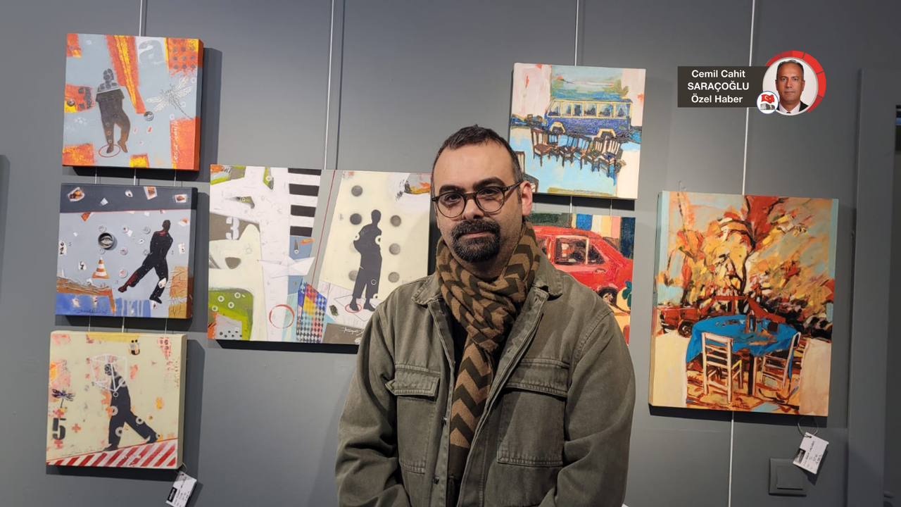 “Kent insanının yalnızlığına biraz vurgu yapmaya çalışıyorum. Soyut kompozisyonlar içerisinde grafiksel kompozisyonlar içerisinde bir evren yaratıp, o evren içerisinde silüet insanlar konumlandırıyorum. Bu evren yaşadığımız habitat, yaşadığımız çevre ve onu sınırlayan mesela bu sergide ‘kaçış rampası’ adını verdiğim bir çalışmam var. Bir kent insanının o kaçış rampasına tırmanması ve kendini orada güvende hissetmesine bir gönderme yapıyorum. Zaman zaman dubalar, yer-yön levhaları, numaralojik sayılar, bunlar metamorfik şekilde resimlerimde yer alıyor. Bu sergiye de özel olarak yeni 4 çalışmamla katıldım. Güzel bir sergi olduğunu düşünüyorum. Çok güzel bir seçki olduğunu belirtmek istiyorum.”
