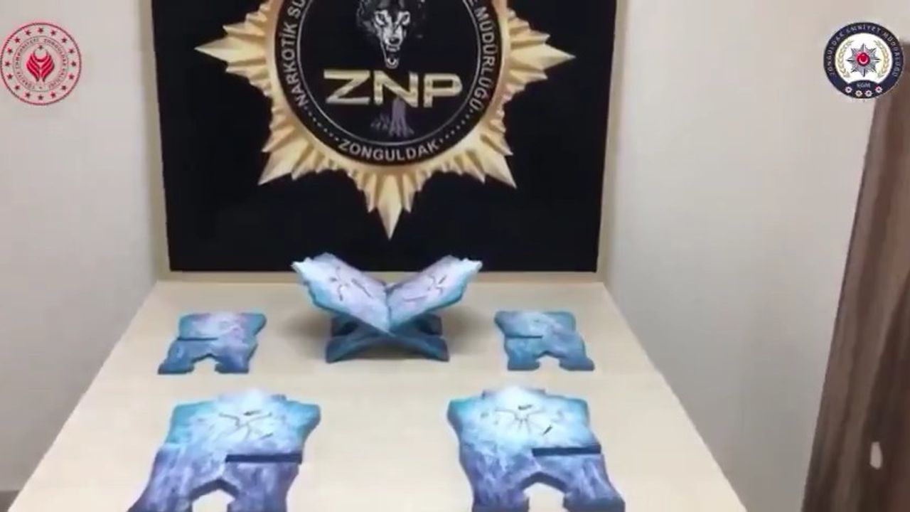 Ereğli ilçesinde Narkotik Büro Amirliği ekipleri istihbarat çalışmasıyla G.A.’yı 3 gram uyuşturucuyla yakaladı. G.A.’nın evindeki aramalarda rahlede kamufle edilmiş 7 kilo 350 gram metamfetamin ele geçirildi. Rahle görünümündeki metamfetamin kalıplarının üzerindeki semazen figürü dikkat çekti. Operasyonda ayrıca 1 tabanca ve 11 tabanca mermisi de ele geçirildi. Operasyonu genişleten ekipler, Sakarya Emniyet Müdürlüğü ile koordineli olarak 16 Ekim’de bir operasyon daha düzenledi. Operasyonda, aynı malzemeden yapılmış 6 kilo 850 gram daha metamfetamin yakalandı. Semazen figürlü rahlede kamufle edilmiş metamfetamin miktarı toplamda 14 kilo 200 grama ulaştı. Operasyonlarda gözaltına alınan G.A., tutuklandı.