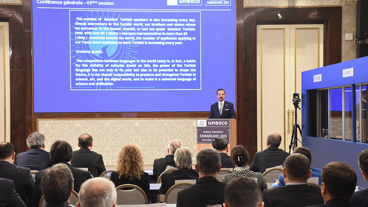Birleşmiş Milletler Eğitim, Bilim ve Kültür Örgütü (UNESCO) tarafından 15 Aralık’ın "Dünya Türk Dili Ailesi Günü" ilan edilmesiyle ilgili Örgütün 43. Genel Konferansı'nın devam ettiği Özbekistan’ın tarihi Semerkant şehrinde etkinlik düzenlendi.