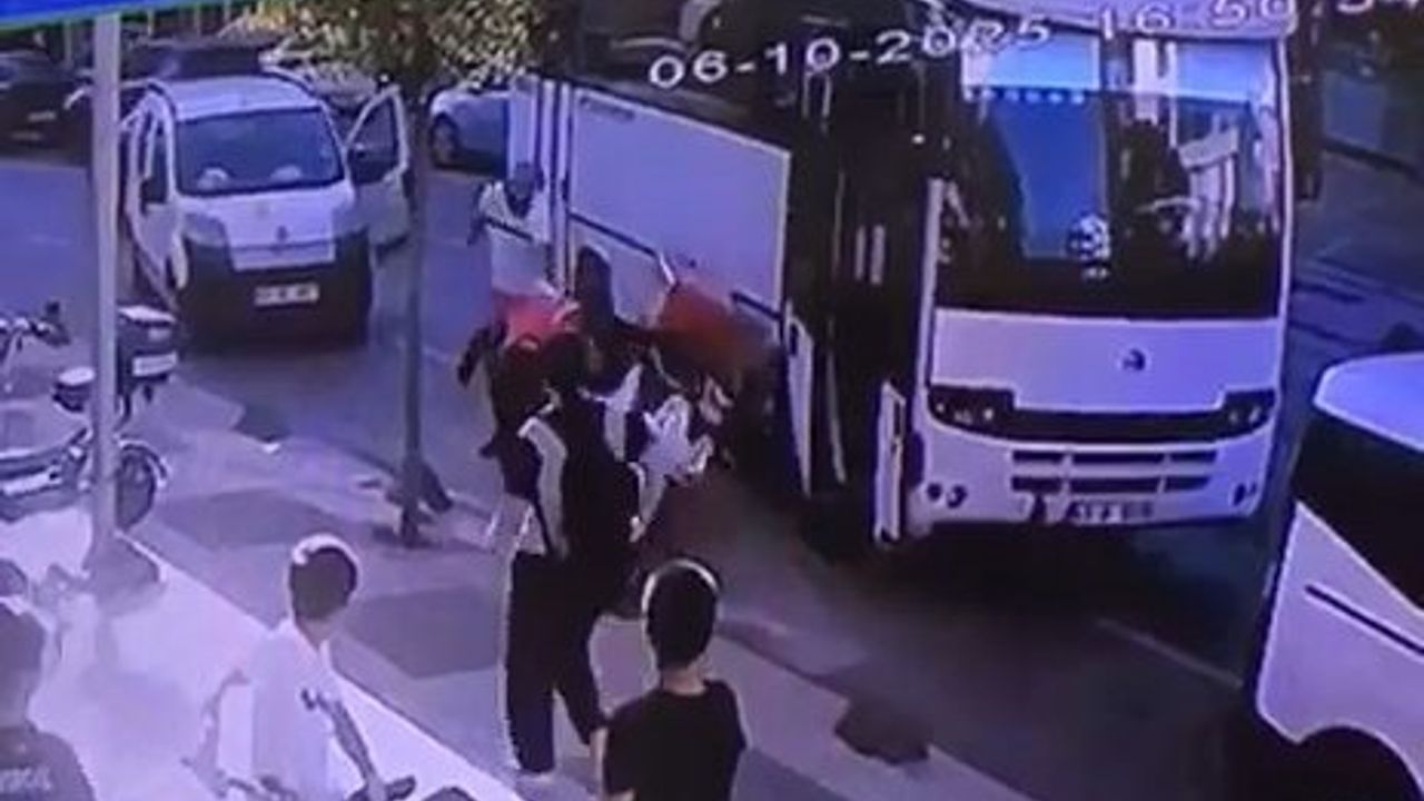 Öte yandan olay anı çevredeki bir marketin güvenlik kamerasına yansıdı. Görüntüde; servis aracı şoförünün motokuryenin önünü kestiği, araçtan inip motokuryeyi yumrukladığı görülüyor. Ayrıca şoförün tekme attığı motokuryenin yere yığıldığı ve çevredekilerin şoföre engel olmaya çalıştığı anlar da yer aldı.