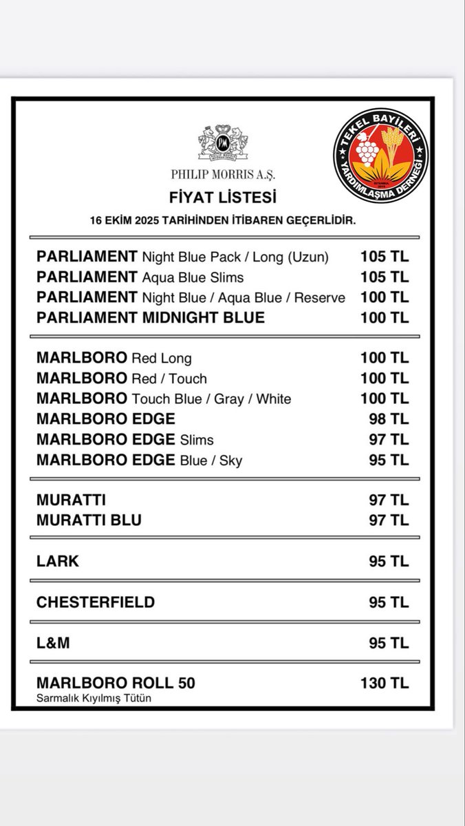 Tekel Bayileri Yardımlaşma Derneği (TBYD) Başkanı Erol Dündar, sosyal medya hesabından sigara fiyatlarına zam yapıldığının bilgisini verdi