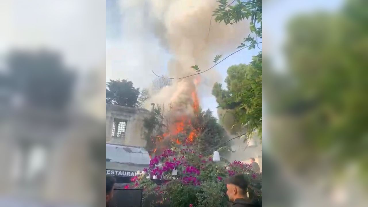 Yangın, saat 15.30 sıralarında Sultanahmet Camii'nin yanındaki restoranın bacasında bilinmeyen bir nedenle çıktı. Kısa sürede büyüyen alevler çevredeki ağaçlara sıçradı. Çevredekilerin ihbarı üzerine itfaiye, acil sağlık ve polis ekipleri geldi. Alevler itfaiye ekipleri tarafından söndürüldü. Sağlık ekiplerinin kontrollerinde yangında yaralanan kimsenin olmadığı belirlendi. Yangın nedeniyle restoranda ve cami avlusunun duvarlarında hasar oluştu. Ekiplerin incelemesi sürüyor.