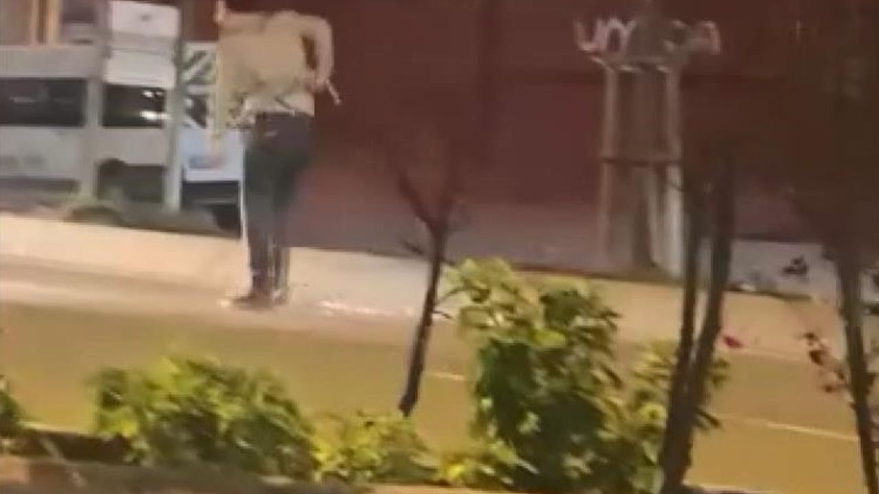 Olay, dün gece saatlerinde İsmetpaşa Mahallesi Mahmutbey Caddesi’nde meydana geldi. Trafiğin yoğun olduğu yolun ortasında bekleyen E.T. isimli kişi, sürücülere zor anlar yaşattı. Zaman zaman araçların arasında dolaşan ve el hareketleri yaparak yön gösteren kişi, bir otomobilin önünde durdu. Araç sürücüsünün hareket etmesi üzerine, şüpheli sürücüye saldırmaya çalışarak aracın camlarına vurdu. Araç sürücüsü ise hızla olay yerinden uzaklaştı. Bu kez çevredekilerin kendisini uyarmasına sinirlenen kişi, belindeki maket bıçağını çıkararak vatandaşlarla tartıştı ardından da üzerlerine yürüdü. Çevredekiler yoldan uzaklaşırken, saldırgan E.T. ihbar üzerine olay yerine gelen polis ekipleri tarafından gözaltına alındı. Yaşananlar cep telefonu kamerasına yansıdı.
