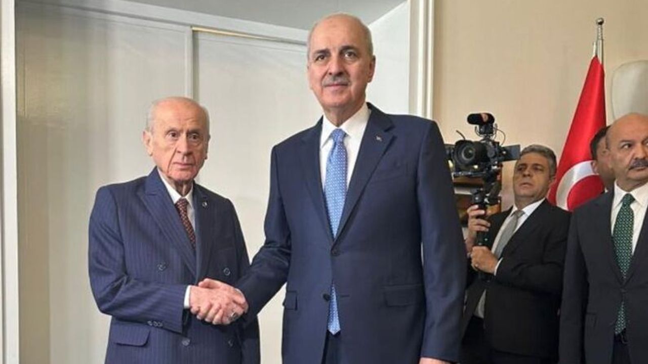 Kurtulmuş'un ilk durağı MHP Genel Başkanı Devlet Bahçeli oldu.TBMM Başkanı Numan Kurtulmuş, Komisyonu"nun hazırladığı raporun ardından siyasi partilere ziyaret gerçekleştirmeye başladı. Bu kapsamda ilk ziyareti, MHP'ye oldu. Ziyarette Genel Başkan Devlet Bahçeli, Kurtulmuş'u makam odasının kapısında karşıladı.