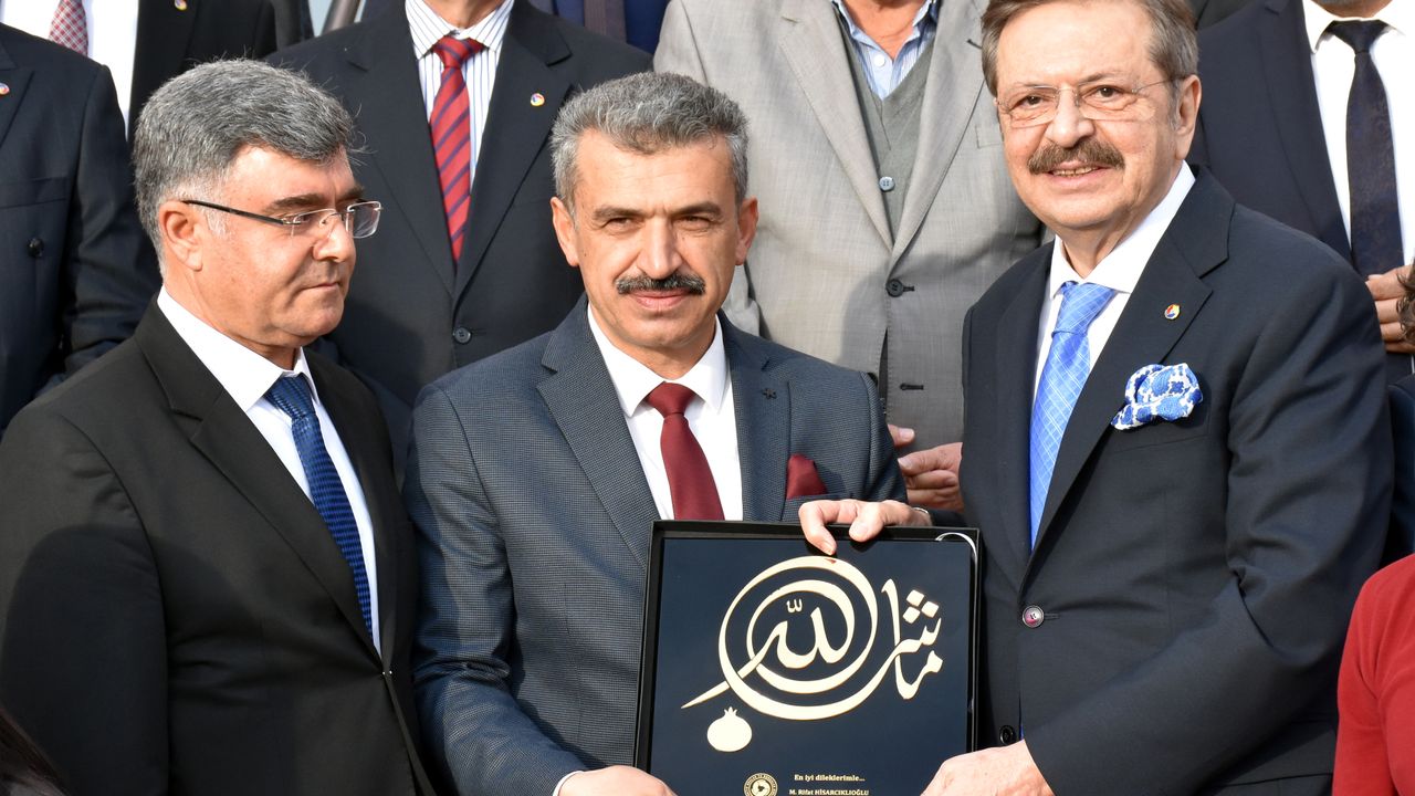 TOBB tarafından yaptırılan Türkiye Odalar ve Borsalar Birliği Mesleki ve Teknik Anadolu Lisesi açılışında konuşan Vali Yardımcısı Recep Yüksel, yaptıkları proje ve uygulamalarla ülkenin kalkınması için destek olan Hisarcıklıoğlu'na, çalışma arkadaşlarına ve oda başkanlarına teşekkür etti.