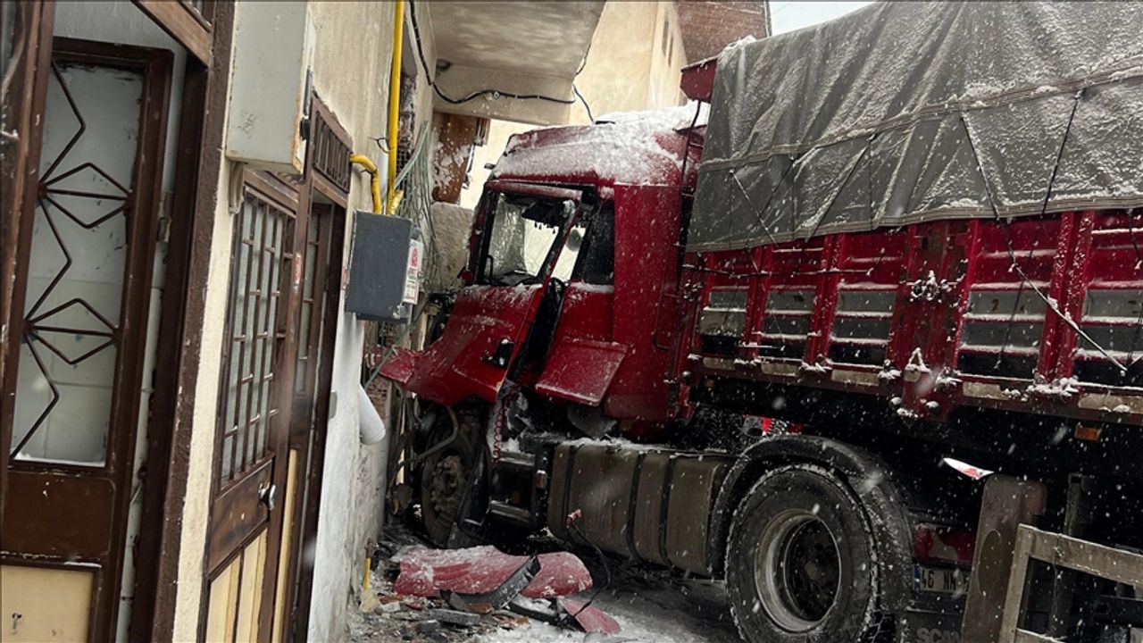 Alınan bilgiye göre, M.A. (50) idaresindeki 46 NN 555 plakalı tır, Çerik Mahallesi'nde Erol Doğan'a ait eve çarptı. Sürücünün yara almadan atlattığı kazada evde hasar oluştu. Tırın eve çarpması, güvenlik kamerasıyla görüntülendi.