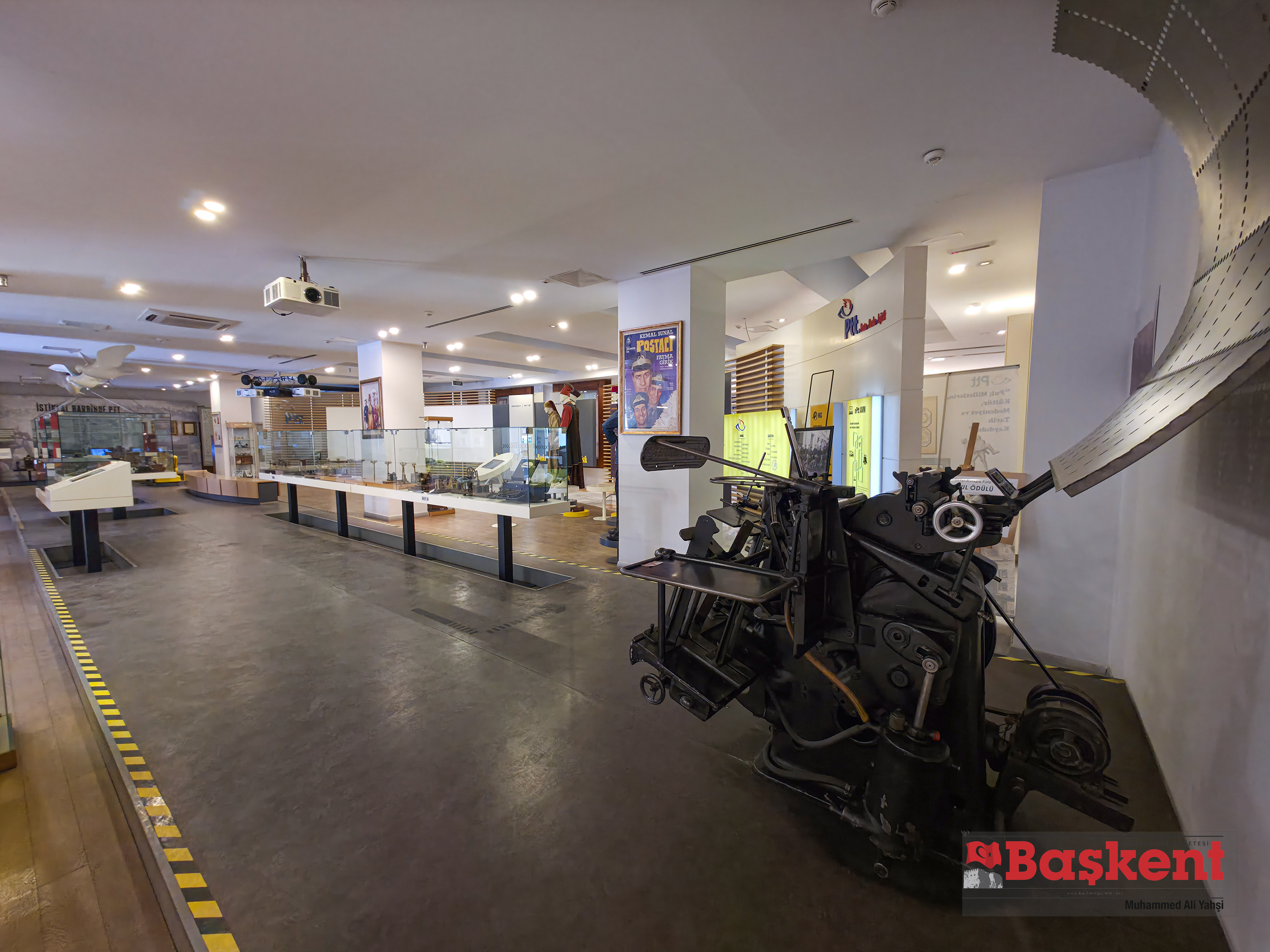 Giriş katında, PTT’nin kuruluşundan bugüne kadar posta hizmetlerinde kullandığı çanta, damga, mühür, tartı ve haberleşme cihazları ziyaretçilerin ilgisine sunuluyor. Aynı katta yer alan üç boyutlu sinema salonunda, posta ve iletişim tarihini konu alan kısa filmler izlenebiliyor.