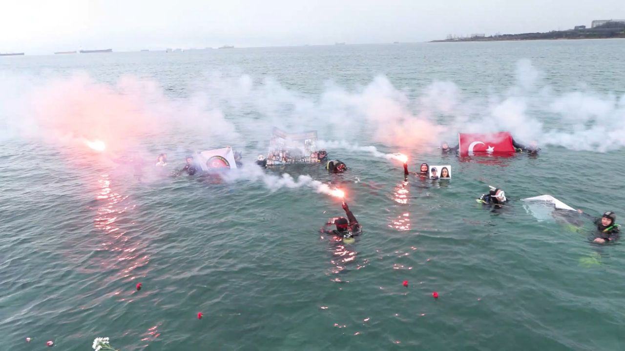 Dalış gerçekleştiren dalgıç Sinem Balaç ise, "Su oldukça soğuktu ama bu kadar insanın karşısında biz üşüdük demeye utanıyoruz. Umarız adalet yerini bulur. Gökhan abinin dediği gibi bu ateş hiç sönmeyecek. Biz de elimizden geldiğince her zaman onları anmaya, değerlerini yaşatmak için elimizden gelen herşeyi yapmaya devam edeceğiz" dedi.