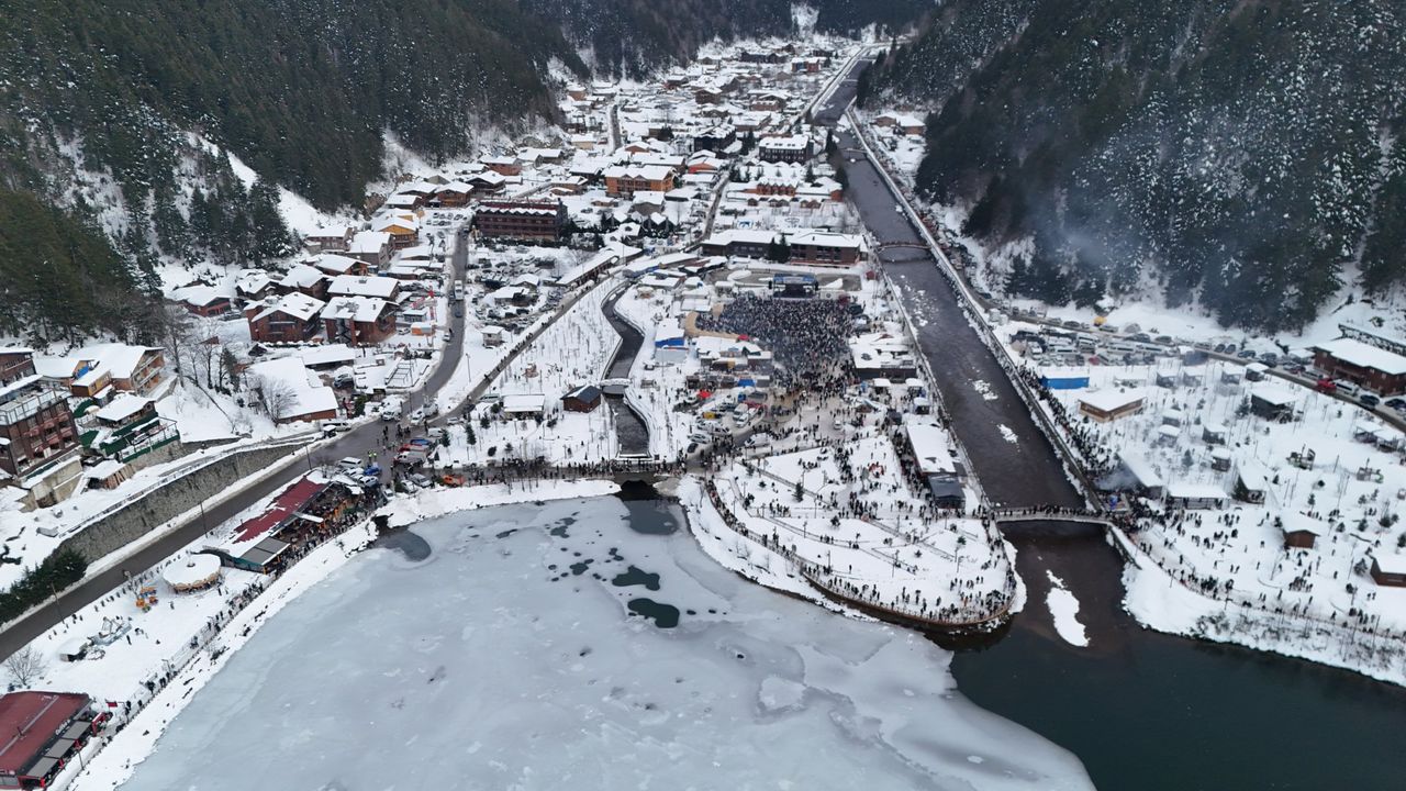 Çaykara ilçesine 20 kilometre uzaklıkta, deniz seviyesinden 1250 metre yükseklikte bulunan kar yağışının ardından beyaza bürünen Uzungöl’de düzenlenen Uzungöl Kış Festivali devam ediyor. Festival programı kapsamında konserler, çeşitli kar oyunları ve çocuklara yönelik eğlenceli aktiviteler düzenlendi. Buz tutan göl çevresinde yürüyüş yapan ziyaretçiler, doğanın sunduğu manzara eşliğinde fotoğraf çektirdi. Festival alanında düzenlenen konserlerle birlikte zaman zaman horon halkaları oluşturuldu. Etkinliklere katılan vatandaşlar, alanda yakılan ateşlerde ısınarak kestane pişirdi. Çocuklar ve yetişkinler için oluşturulan kayak pistinde kayanlar ve kardan adam yapanlar, festivalin keyfini çıkardı. Ortaya çıkan seyirlik manzara ve renkli görüntüler dronla görüntülendi.
