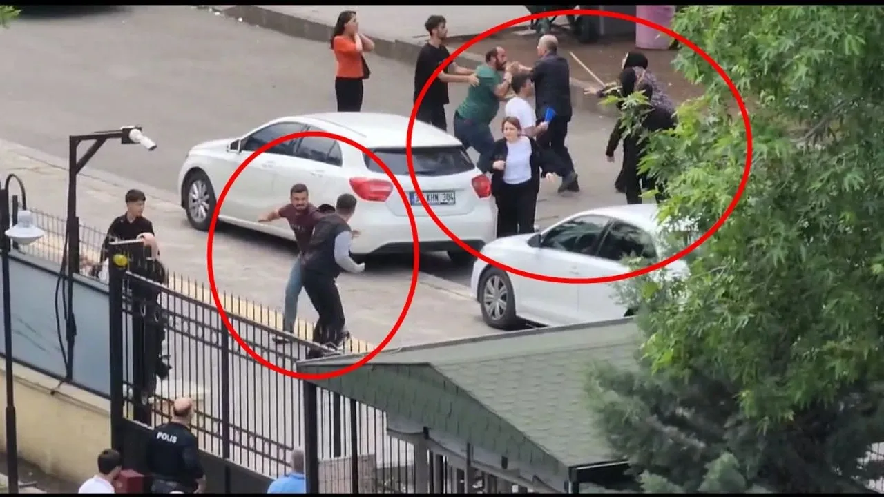 Diyarbakır'da, adliye önünde iki grup arasında çıkan sopalı, tekmeli ve yumruklu kavga, kameraya yansıdı.