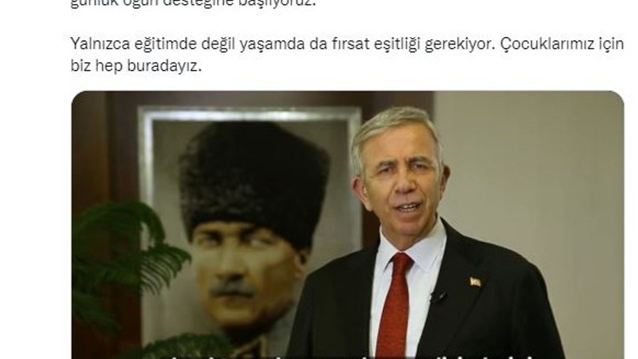 Ankara Büyükşehir Belediye (ABB) Başkanı Mansur Yavaş, “Öğrenci başına aylık 330 lira destekte bulunarak evlatlarımızın beslenmeleri için kıymetli bir adım atmış olacağız” dedi.
