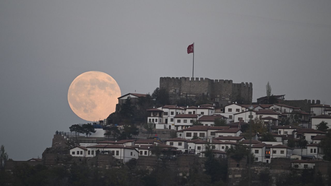 Ankara'da akşam saatlerinde gökyüzünde beliren dolunay Anıtkabir'den görüntülendi. Ankara'da akşam saatlerinde beliren, 'Kunduz Ayı' olarak da adlandırılan dolunay şehrin dokusu ve Ankara...