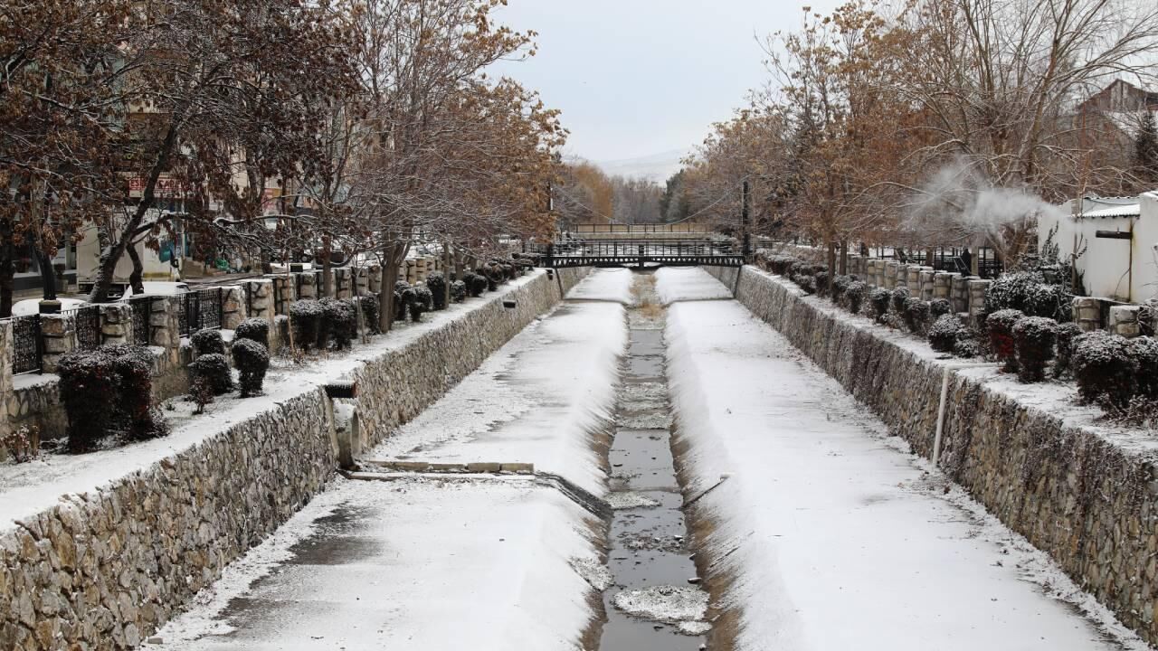 Kar aralıklarla ilçede devam ederken, yüksek alanlar beyaza büründü.
