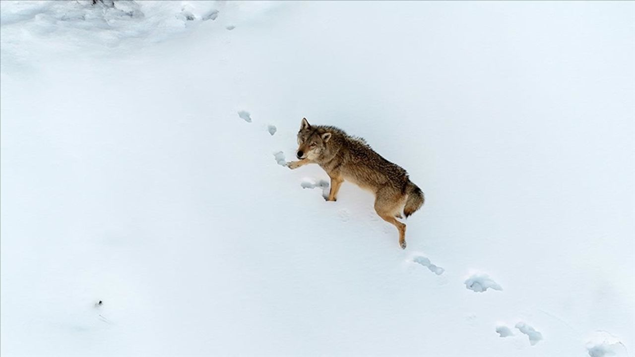 SİVAS'ın Altınyayla ilçesinde karlı arazide gezen 4 kurt dron ile görüntülendi.
