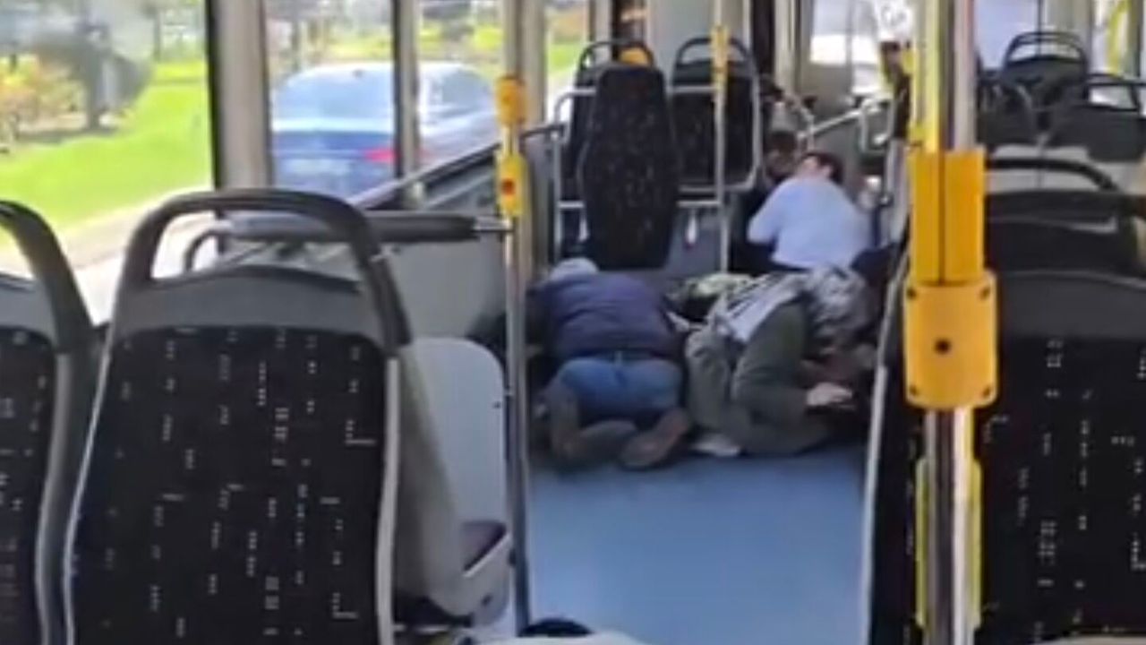 Beşiktaş'ta İsrail Konsolosluğu’nun da bulunduğu binanın önünde çıkan silahlı çatışma, çevrede paniğe yol açtı. Çatışma sırasında yoldan geçen bir İETT otobüsüne kurşun isabet etti. Otobüstekilerin panik anları kameraya yansıdı.