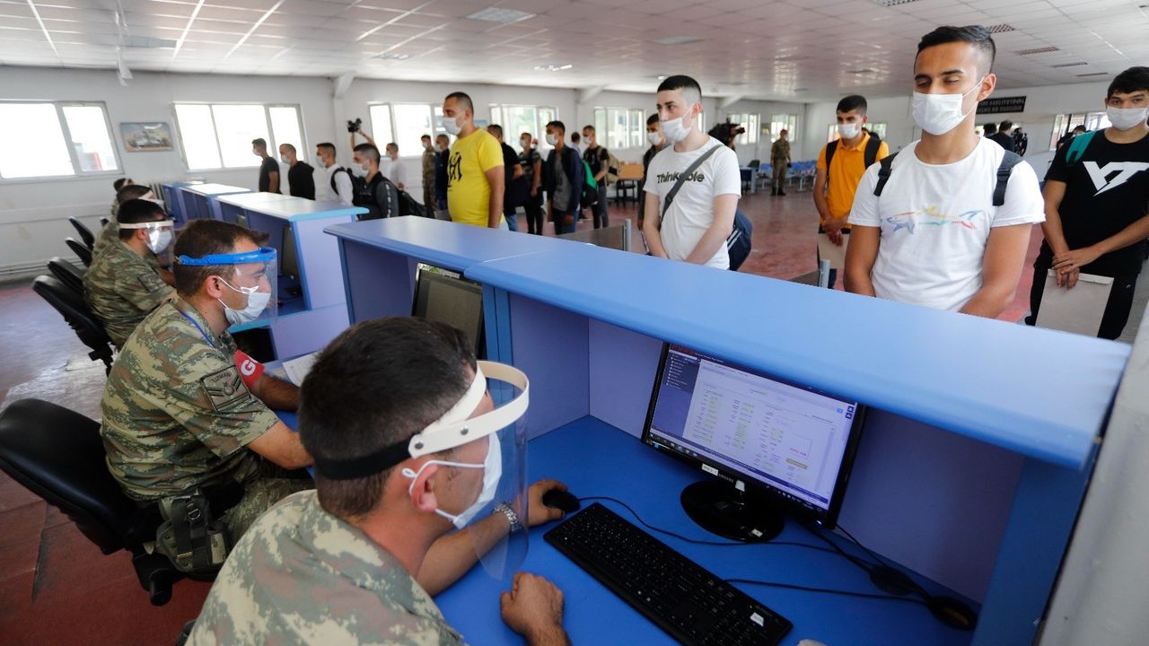 Askerlik vazifelerini yapmak üzere birliklerine teslim olan erler, sevk edildikleri askerlik şubesinin bulunduğu şehir otogarlarına gelişlerinden üniformalarını giydikleri ana kadar, korona virüs (Covid-19) tedbirleri kapsamında çok sayıda kontrolden geçiriliyor.