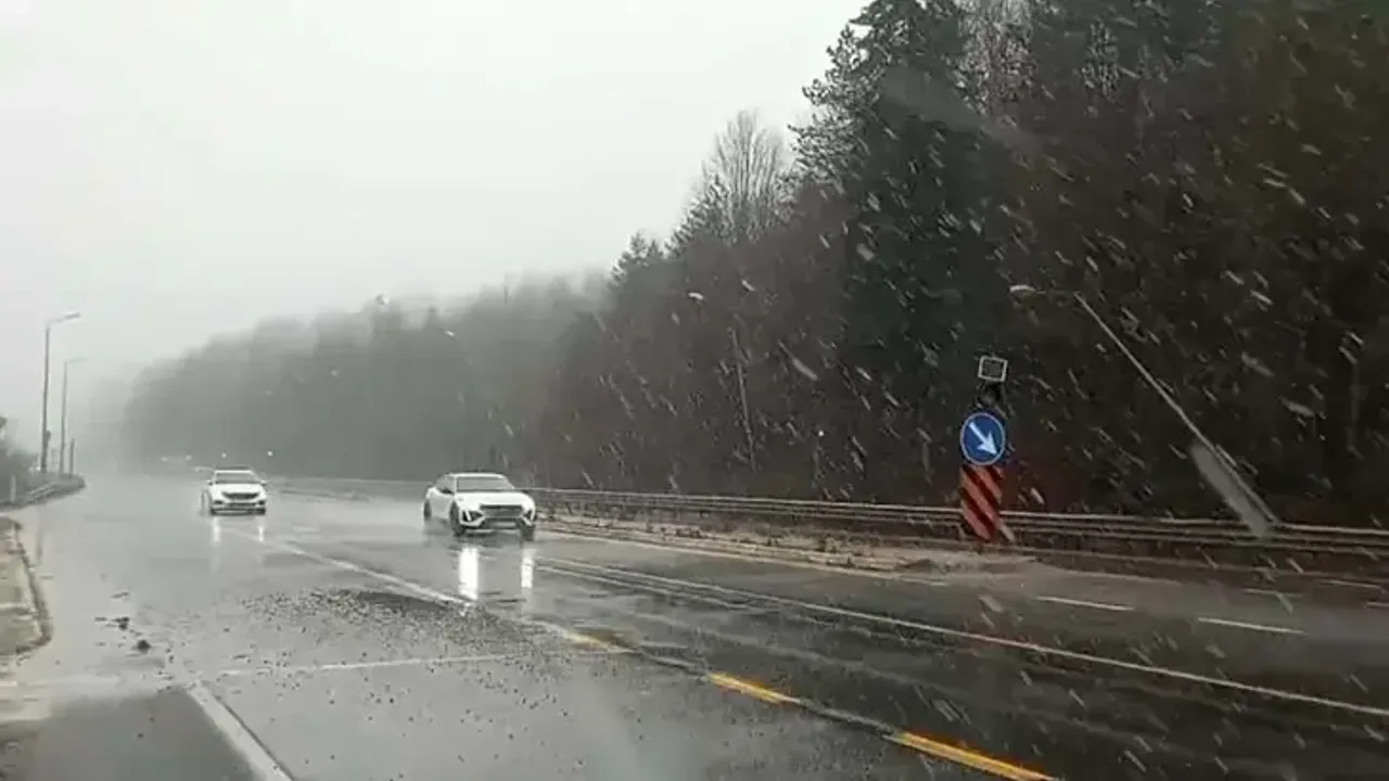 Bolu Dağı'nın D-100 kara yolu geçişinde kar yağışı kısa süreli etkili olurken, ulaşımda aksama yaşanmadı.