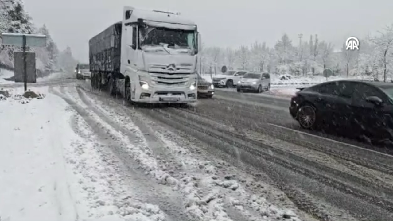 Bursa-Ankara kara yolunda başlayan kar nedeniyle ulaşım güçlükle sağlanıyor.