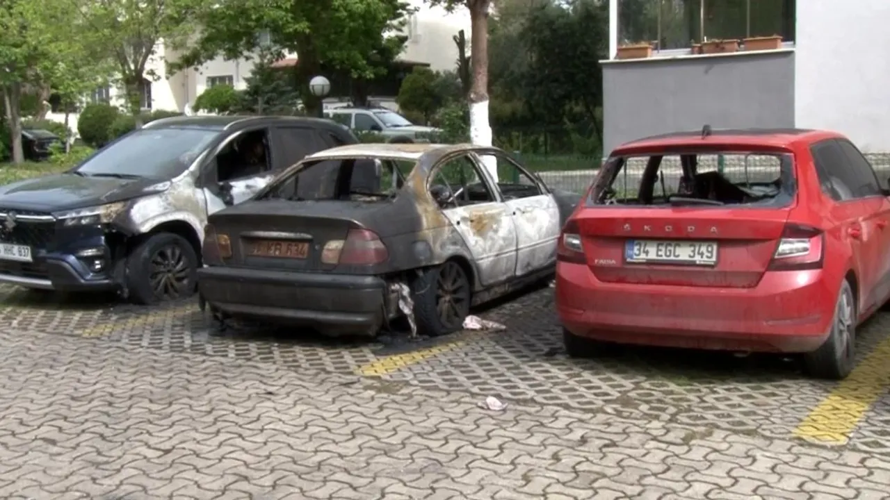 Büyükçekmece'de park halindeki 3 otomobil, yanarak kullanılamaz hale geldi.