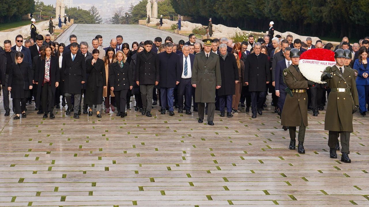 Özel, beraberindeki PM, YDK üyeleri ve milletvekilleriyle Aslanlı Yol'dan yürüyerek Atatürk'ün mozolesine çelenk bıraktı, saygı duruşunda bulundu.