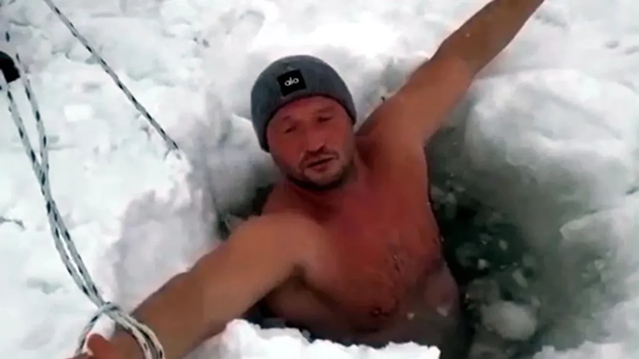 İstanbul'dan gelen yüzücüler Aydın Aydıner ile Hayriye Çetin, Çıldır Gölü'nde kızak keyfinin ardından buz gibi suya girdi. Gölde atlı kızak işleten Dural Daşdemir'in yaklaşık 40 santimetre kalınlığındaki buzu kırmasının ardından...