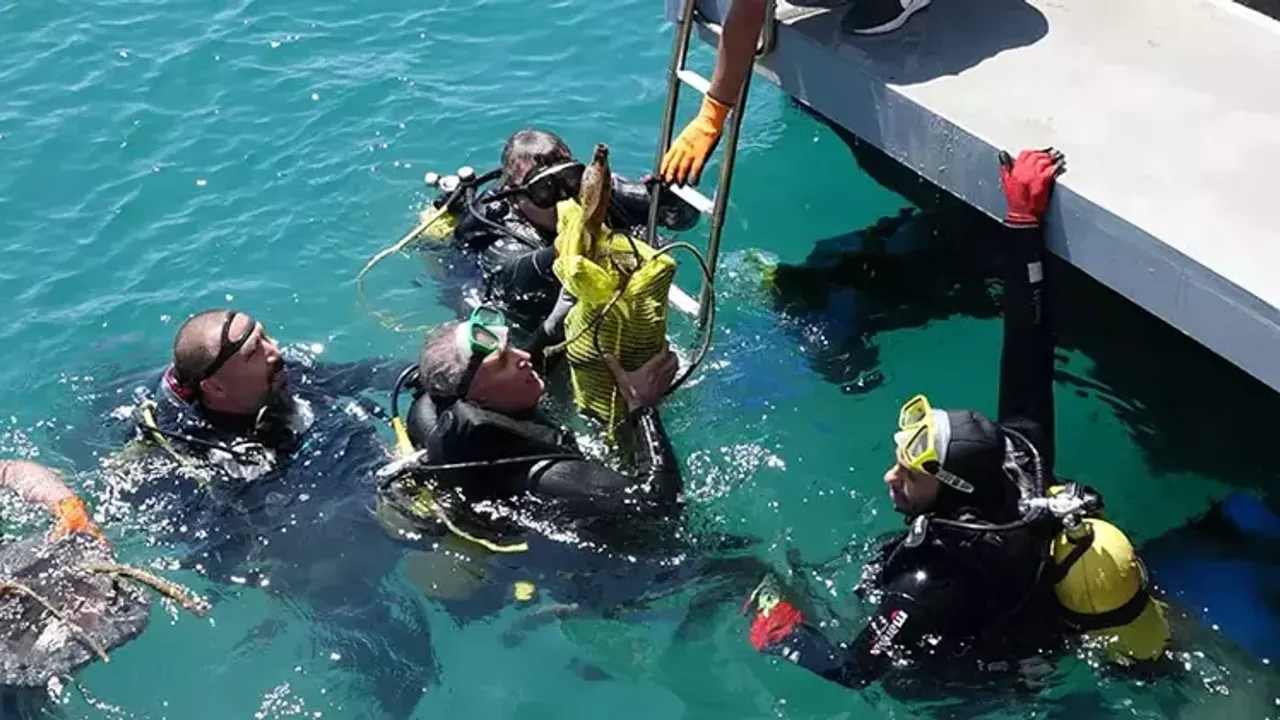 Deniz dibi temizliğinde 1 ton atık çıkarıldı