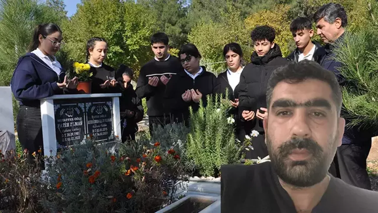 Gaziantep'in İslahiye ilçesinde, depremde yaşamını yitiren rehber öğretmen Fatih Elmas (42), öğrencileri ve mesai arkadaşları tarafından mezarı başında anıldı.