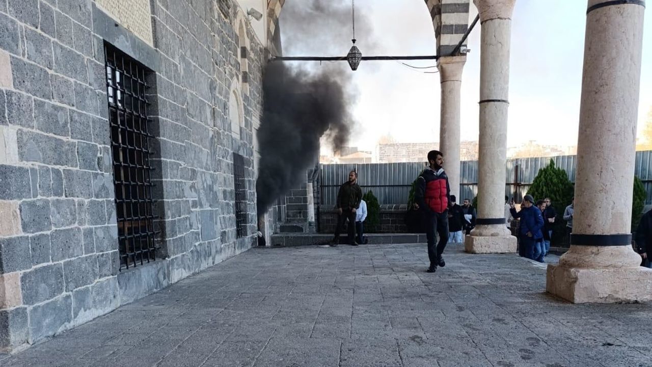 Diyarbakır'da 508 yıllık Kurşunlu Camisi'nde cuma namazı vakti yangın çıktı. Cemaatin camiyi terk ettiği anlar kameraya yansırken, yangın itfaiye tarafından söndürüldü.