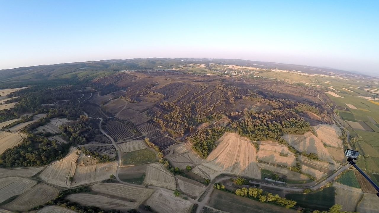 Edirne’nin Keşan ilçesinde meydana gelen orman yangınında zarar gören alanlar havadan görüntülendi.